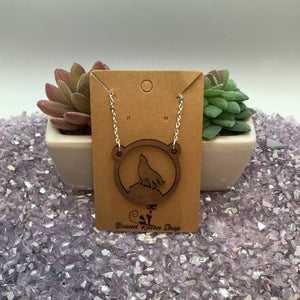 Primal Wolf Wood Necklace on 18" Chain